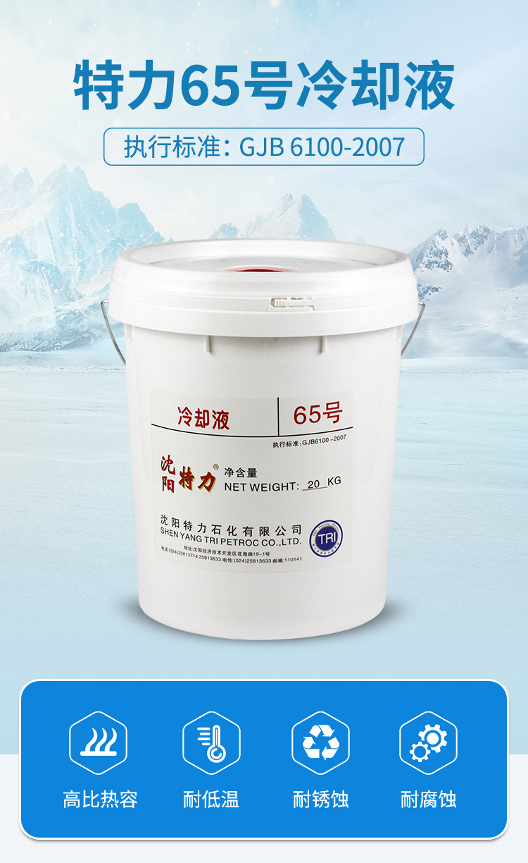 該產(chǎn)品符合國軍標(biāo)GJB6100-2007執(zhí)行標(biāo)準(zhǔn)。除了65號之外,特力還提供冷卻液的標(biāo)號、包裝定制功能:包括40號、45號、50號、60號以及4kg、20kg以及客戶所需包裝服務(wù),歡迎咨詢