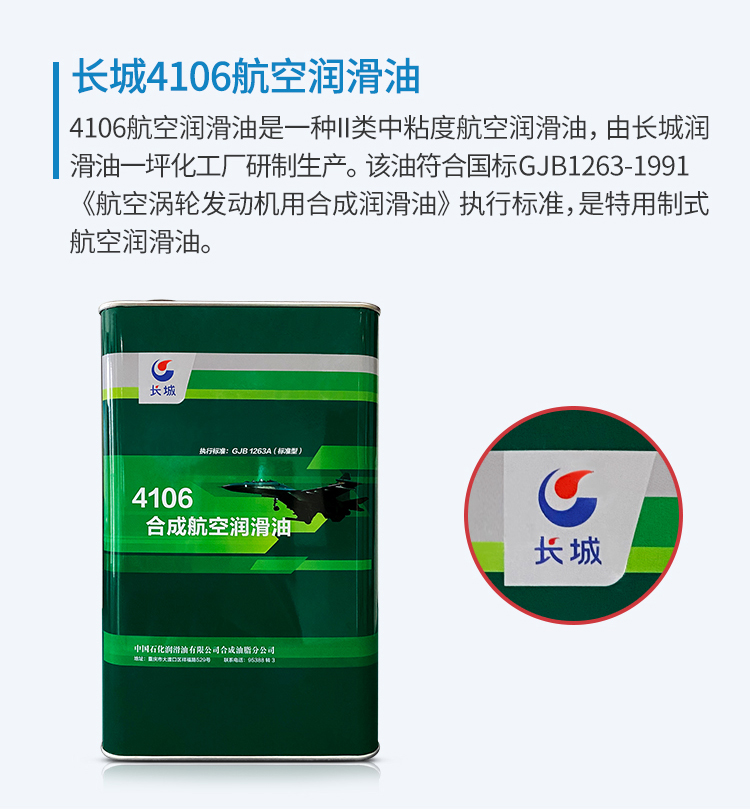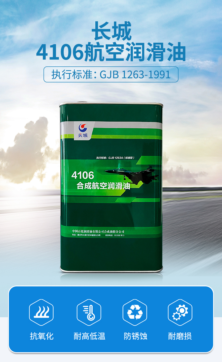 長城潤滑油一坪廠生產的4106航空潤滑油是一種合成酯類航空潤滑油,主要用于渦噴、渦扇和渦軸等類型的航空發動機。目前該油是部隊多種型號飛機的制式潤滑油之一,符合國軍標GJB 1263-1991執行標準,性能成熟,市場占比高。