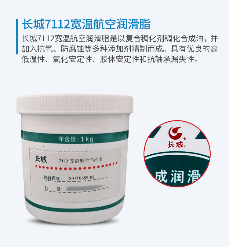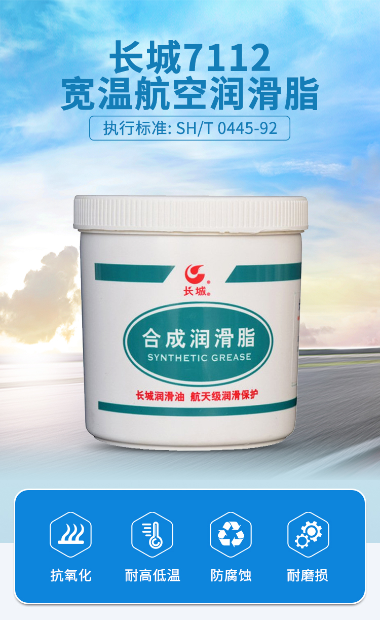 長城7112寬溫航空潤滑脂是以復合稠化劑稠化合成油,并加入抗氧、防腐蝕等多種添加劑精制而成。